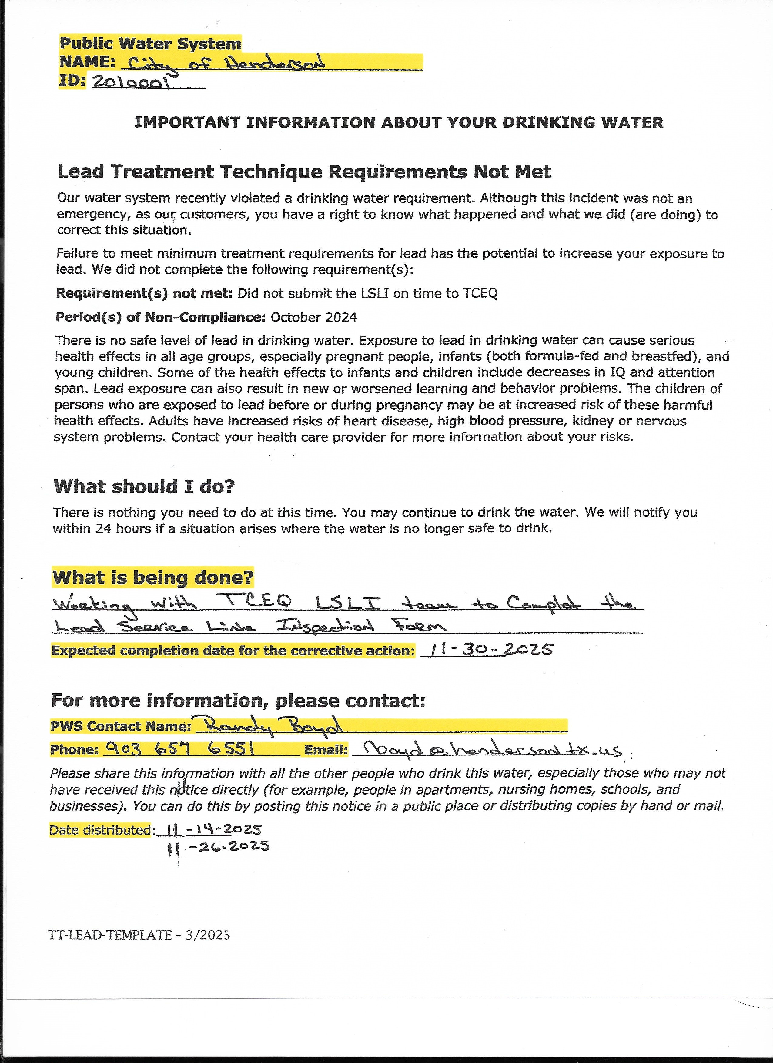 - Phone numbers of additional sources of information, including the water system;
